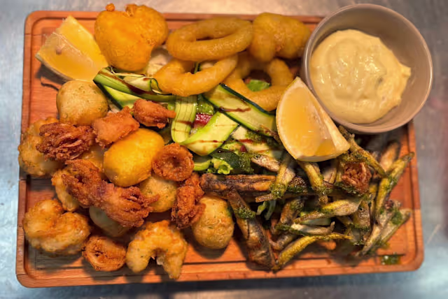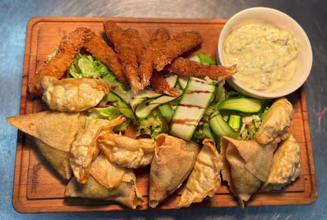 - Lieu noir facon fish & chips, sauce tartare maison, frites maison et salade.