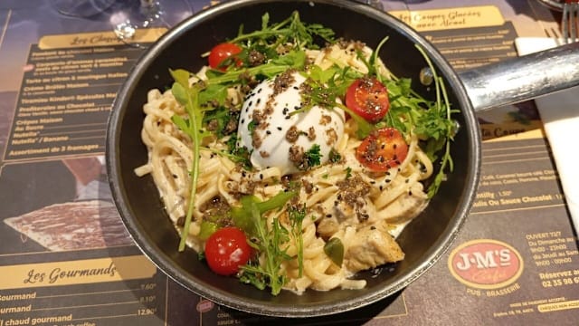 Pain grillé, charcuterle et pommes de terre grenaille, pointe d'origan.
