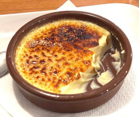 8/10Overall, a good lunch, until I got the crème brulée. Good, basic food, nothing fancy, with reasonable prices. The other desserts - chocolate cake, tiramisu - were fine. The crème brulée was cold all the way through, like it just sat in refrigeration, dropped off at the table without ever seeing any kind of heat applied on the way. The location is convenient, and the daily specials can be good - although today's didn't excite me and I ordered off the menu. Overall, a good place to meet with good service with a convenient location.