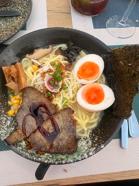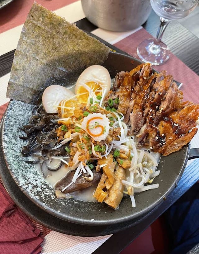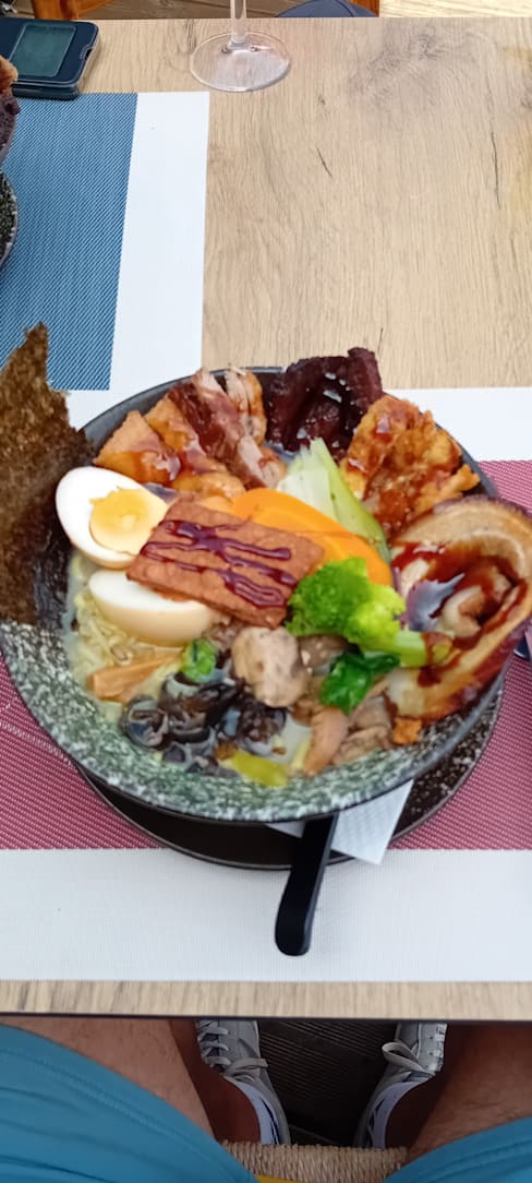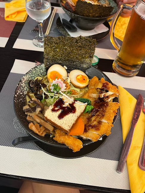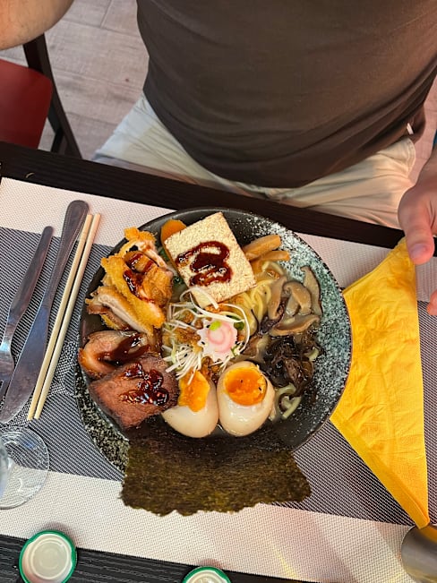9/10Attentive service which was great. Starters arrived at different times. There was an unexpected foreign item in the duck bao buns but staff were apologetic and happy to offer a replacement. Only problem was it arrived after we finished the main dishes. The beef ramen was tasty but disappointing on amount of beef. The chicken yakisoba was very flavourful and we ate the lot. Overall I would definitely go again and recommend