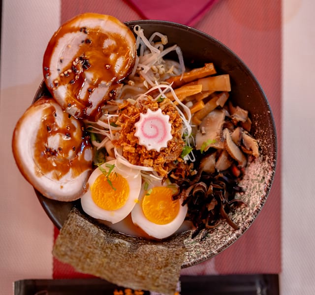 Combo 1: gyozas + tonkotsu ramen + bubble tea