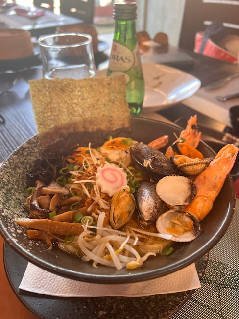 9/10Attentive service which was great. Starters arrived at different times. There was an unexpected foreign item in the duck bao buns but staff were apologetic and happy to offer a replacement. Only problem was it arrived after we finished the main dishes. The beef ramen was tasty but disappointing on amount of beef. The chicken yakisoba was very flavourful and we ate the lot. Overall I would definitely go again and recommend