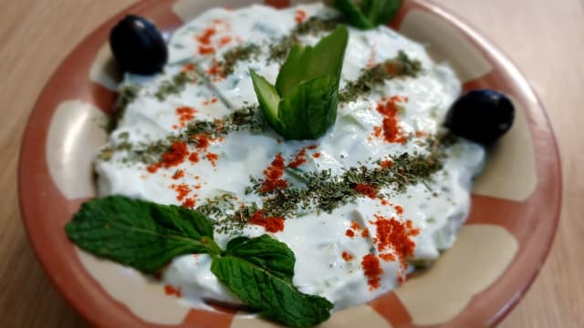 6 entrées froides. 6 entrées chaudes, 1 plateau de grillades mixtes. servi avec galettes libanaises et dessert maison.