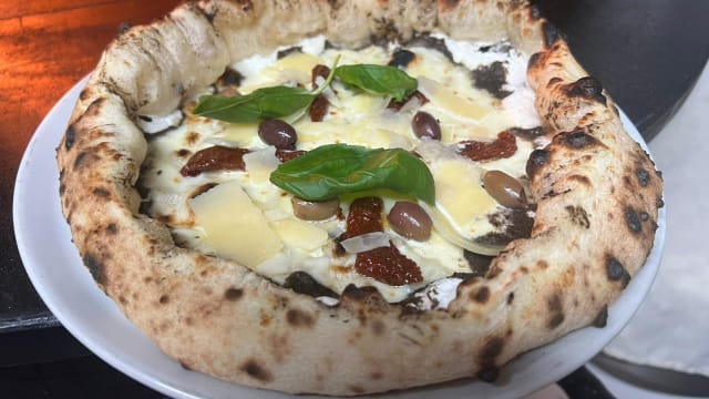 Bufala di paestum, pachino, basilico, grana e olio evo - manico con ricotta, bufala di paestum, funghi champignon, prosciutto cotto e olio evo