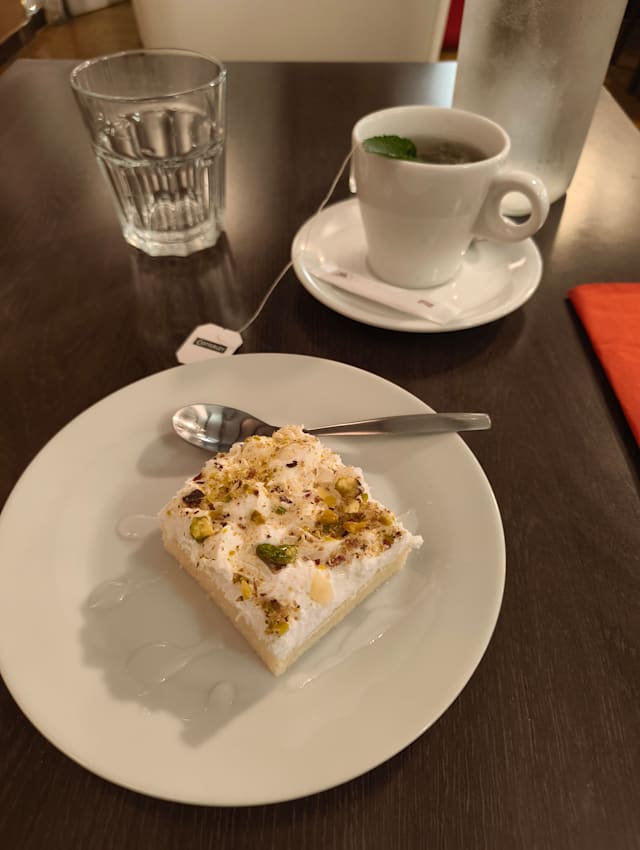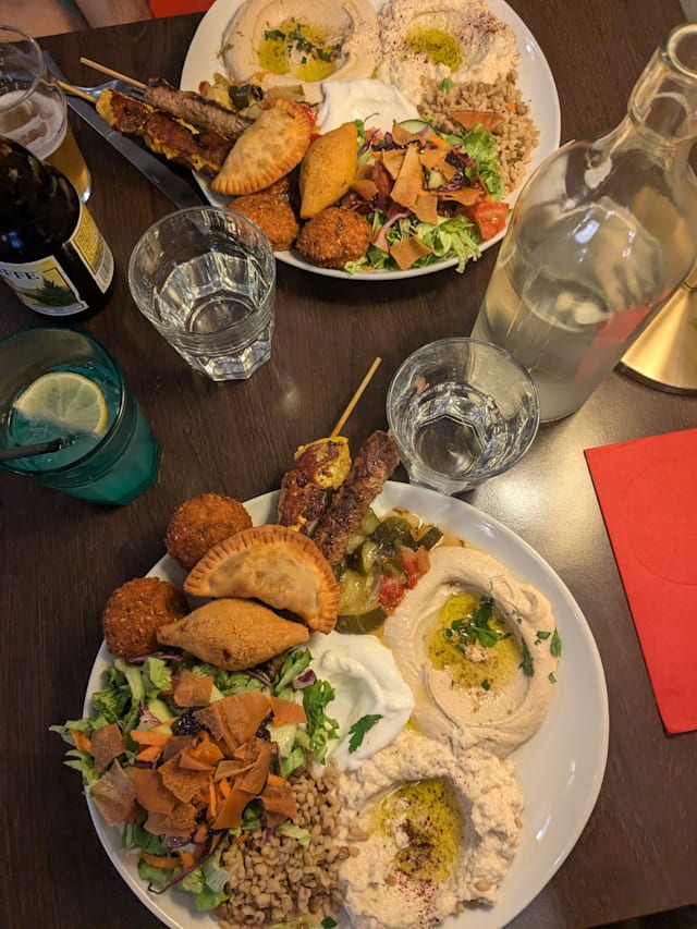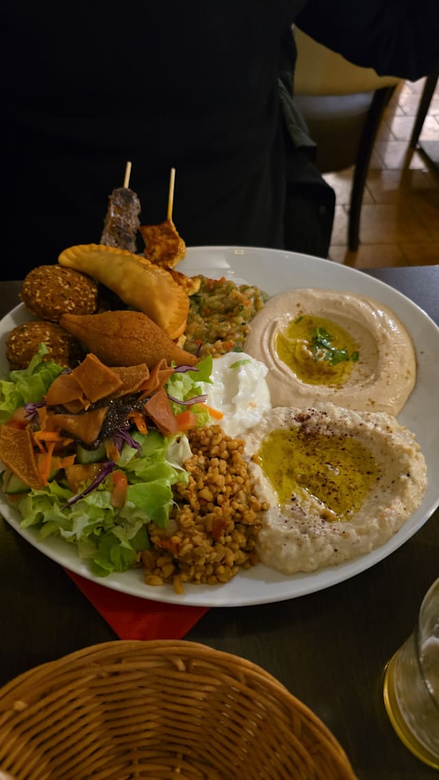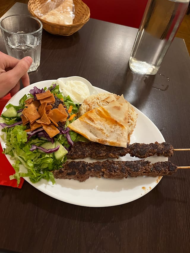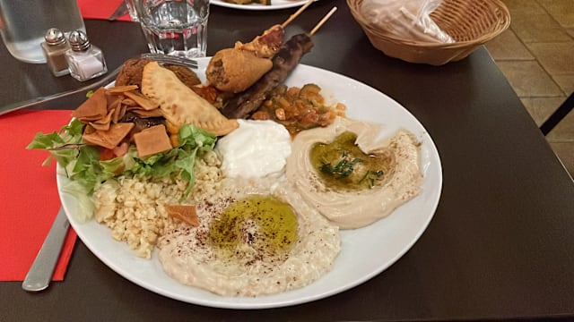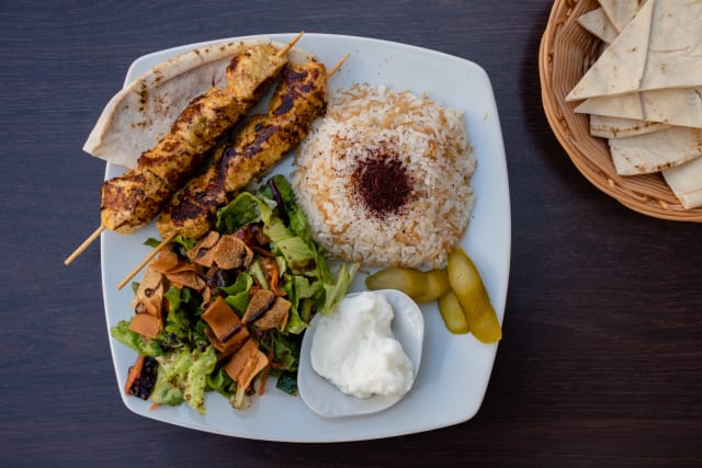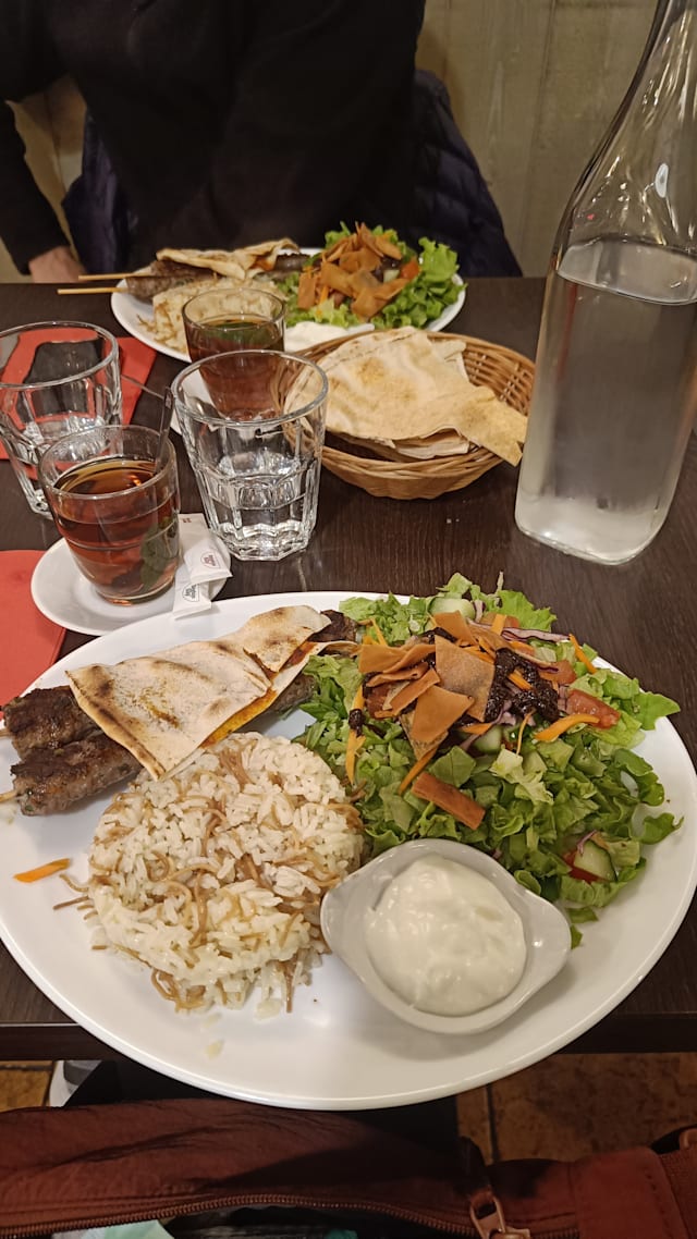 10/10The restaurant is nicely decorated inside and tables are available to sit outside. We were presented with the menus promptly as they had just opened at 7pm. The menus were in English and the food came out soon after. We ordered the Moutabal (Aubergine Caviar and Falafel the starters were accompanied with a good supply of flatbread. We didn’t have to wait long before our main courses came and we had Chicken Skewers and Beef Skewers accompanied by Rice with Fried Onions Salad, Baked Tomato Bread and Dips. We also had water and a 50cl carafe of white wine. This was a fantastic meal, well presented, plentiful and excellent value for money, the service was superb the waitress was lovely and pleasant. The 20% Fork discount was applied after confirmation who we were. Fantastic a must go to.