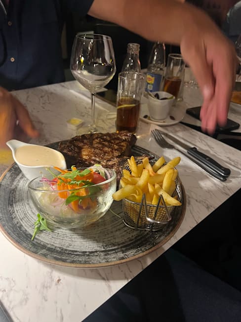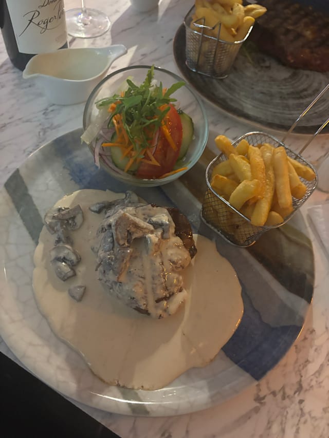 10/10very nice food and a good atmosphere, what more is there to ask for? the poulpo as a starter was perfect and the rye wing just the way I prefer. the salmon with bearnaice was also delicious.