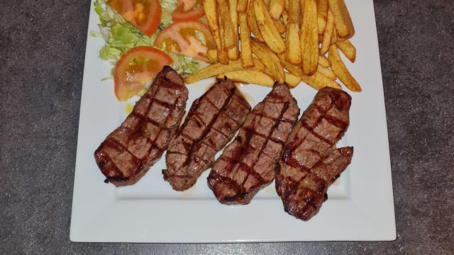 Ail, oignons, persil et accompagnement au choix (frites, riz, salade)