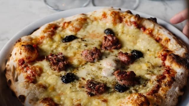 Côte de bœuf cuite au feu de bois, et four à pizza au feu de bois.