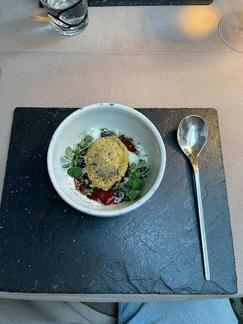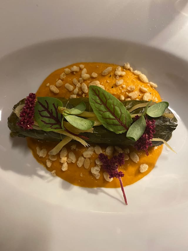 7/10Venue was very lovely and quaint. We were greeted very warmly and the place was sold out. The wine pairings were well thought out and the first two courses were very good. Unfortunately when the main course came we both were disappointed with the flavors and texture of the dish. The restaurant was understaffed and it took us 30 minutes to get our final check leaving the ending a disappointment.
