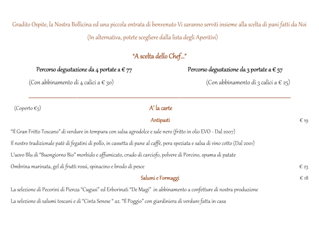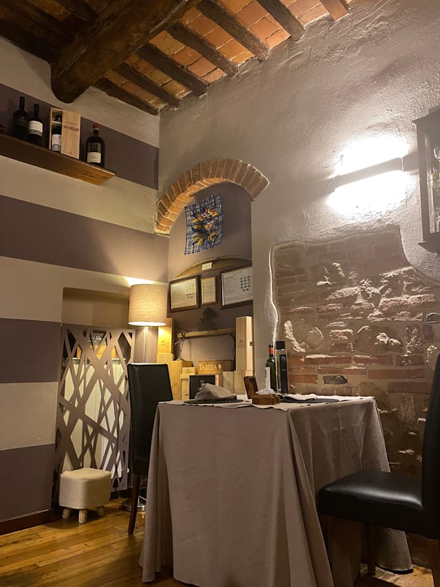 8.5/10Nice location in the historic center of Montepulciano and cosy atmosphere inside. Great wine selection. Prices are moderate for this level of restaurant. We tried few things which were extremely good and few, which are good but not wow for a Michelin recommended restaurant. Our favorites were the liver pate (signature dish) and the egg in nest dessert. Service by the owner is excellent, the rest of the team is a bit distracted. Overall a very good experience.