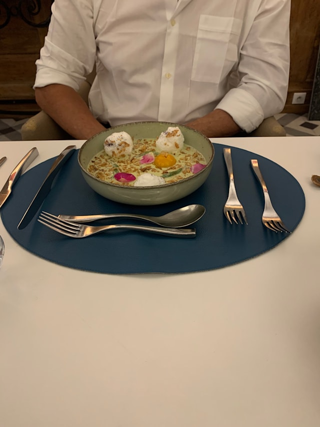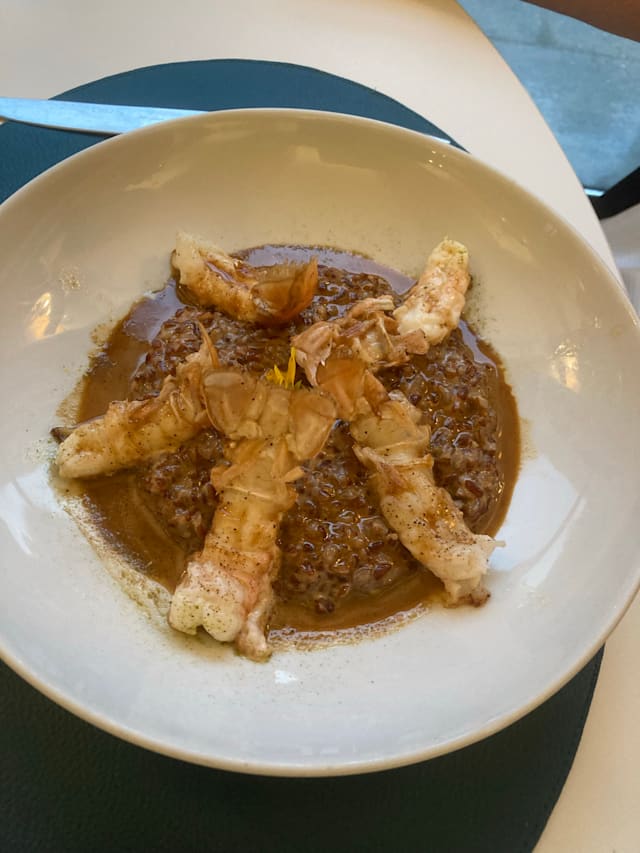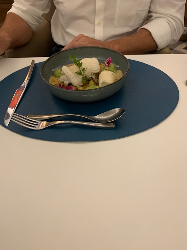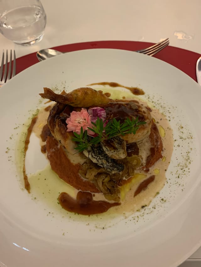 3.5/10What a disappointment! The food already looked bad when it arrived, pretentiously arranged on the plates, but not fresh, overcooked, with some of the worst mushrooms and watery accompaniments I’ve had in restaurants, let alone expensive ones. The fish? Never had such a bad monkfish before. The service was not better. When I arrived the first server did not bother to welcome me; the second took me to my table when I walked up to him to say I was waiting. Later he forgot to bring me the wine I ordered. I had really looked forward to this dinner and find myself writing the worst review I’ve ever written.