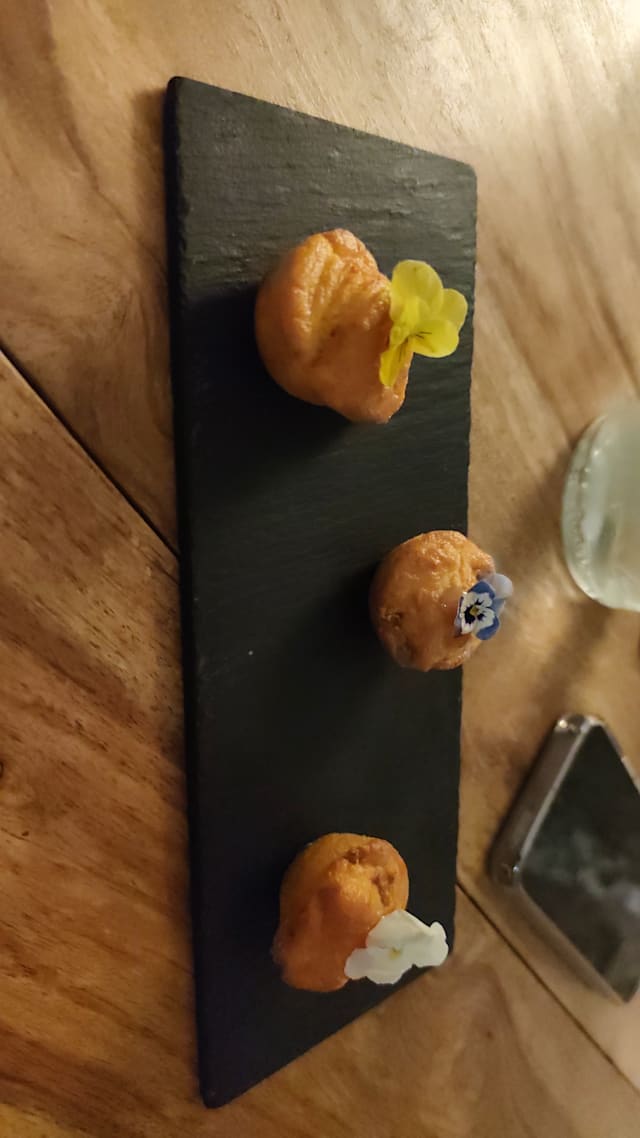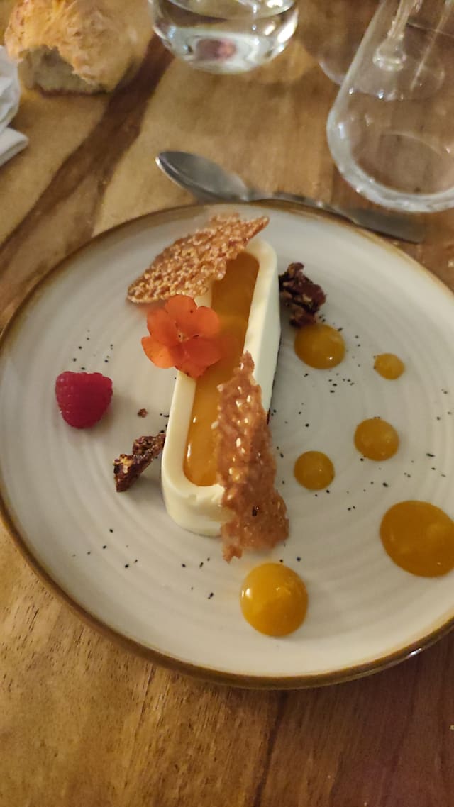 Courge, en crème tiède et petits dés au romarin, quenelle de ricotta et noisettes torréfiées