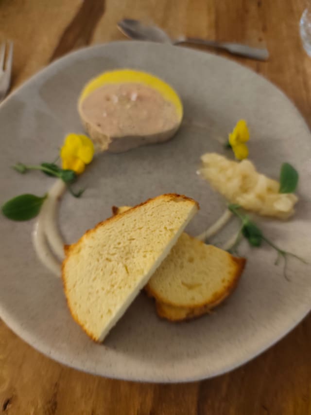 Mi-cuit de foie gras au cognac, chutney de poires et brioche grillée façon panettone