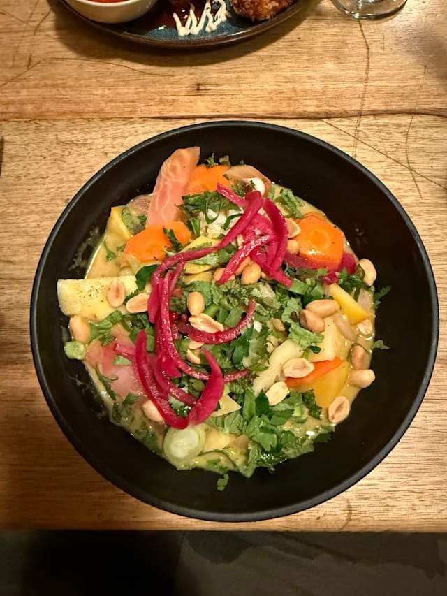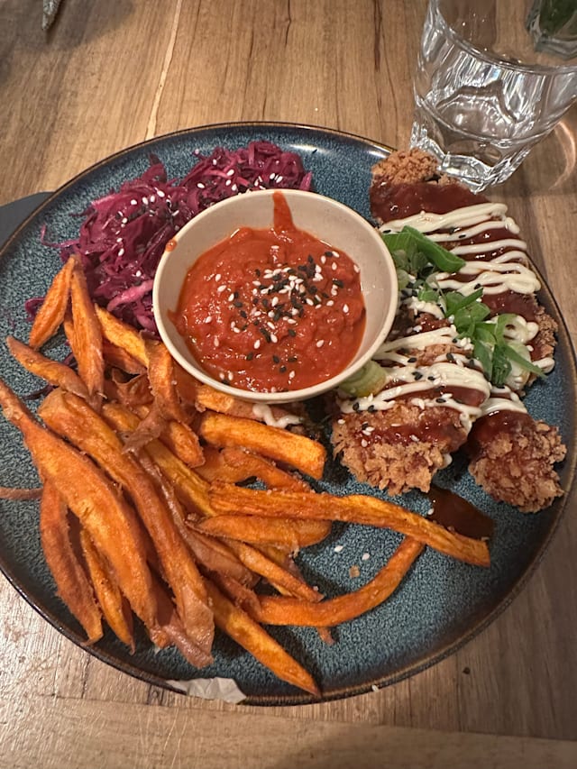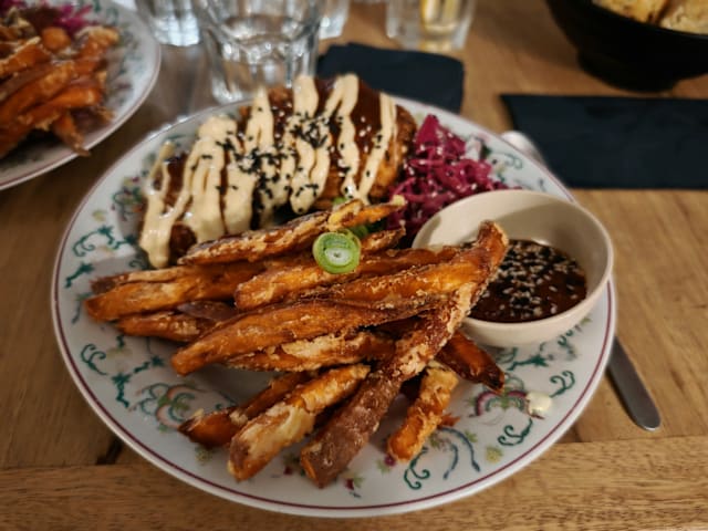 8/10Dinner was tasty and staff so kind and friendly. A nice place where vegans can eat well. Maybe, apart from vegetables, it could be useful to add some proteins, like tofu, seitan or legumes. (Le pain français est vraiment super! Et le pastis... je l'ai adoré!) Last thing: please fix the door, 'cause cold air right on shoulders isn't the best...