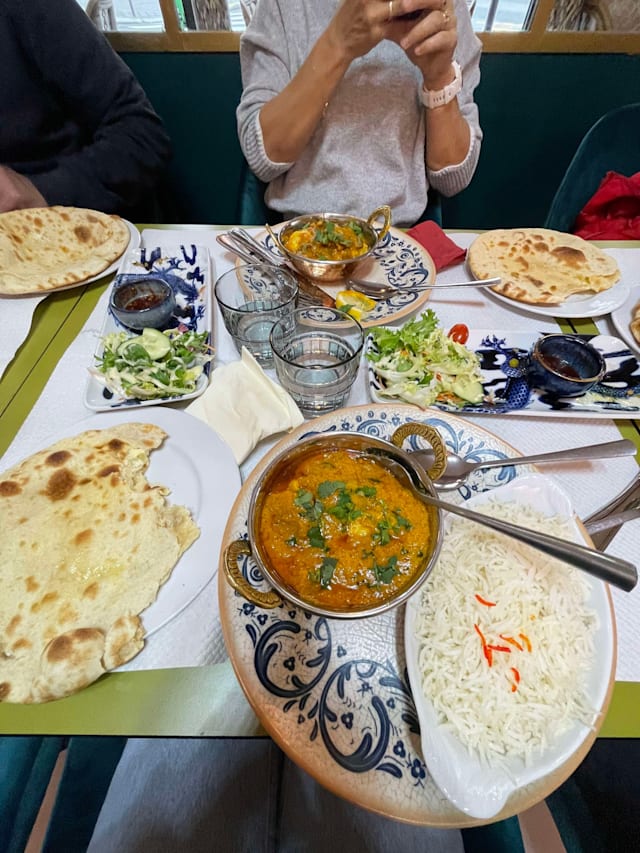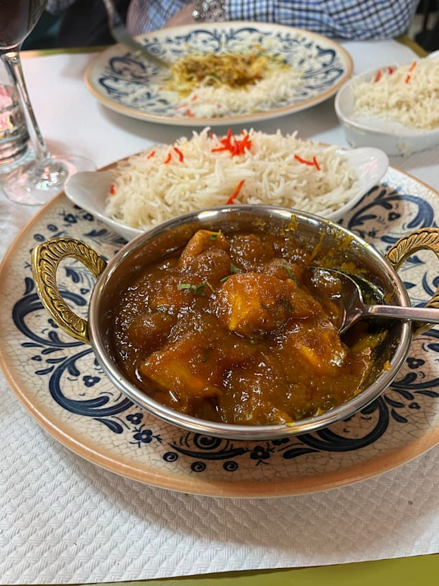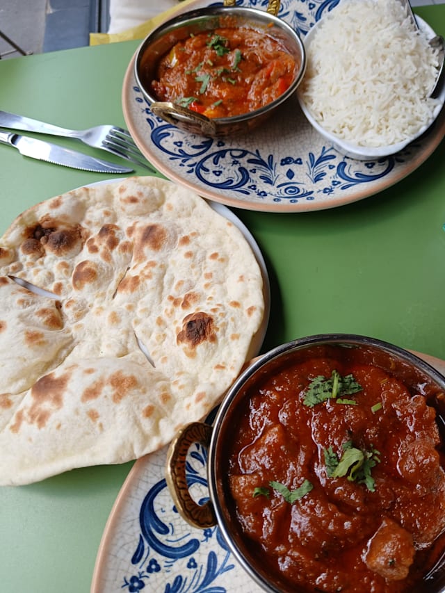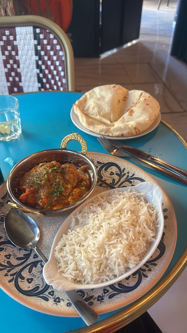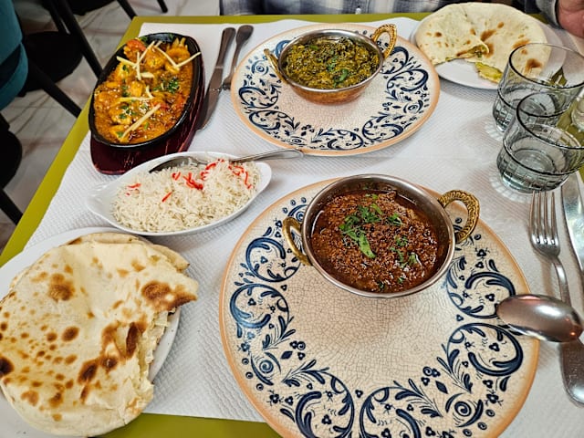 8.5/10Nice restaurant, just opened. So they can improve a few details as always but the tastes were really good. Not very spicy so that's convenient for most! The Vindaloo was real good and indeed easy to eat, no fire! You can request for more spicy if you wish. The Côte du Rhône bio is great and inexpensive, still a great choice with Indian. The lighting is of course too much as the deco but it's not that a problem. The waiters are very nice and at your service any second. The portions are not big big but it was known before. Naans were good as well. Enjoy!