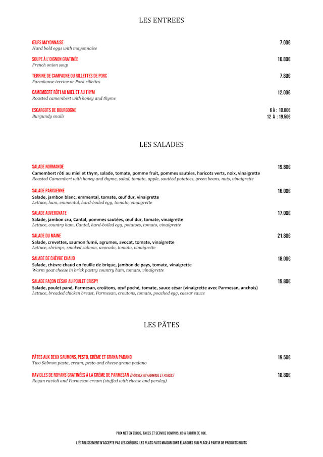 FrenchEuropeanCevicheEscargotsSaladBrasserieLunchOutdoor diningChildren's menuFootball gamesWifi