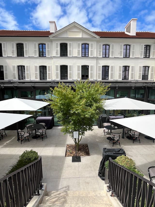 9/10The property and restaurant patio are magnificent with a distant but charming view of the Eiffel Tower. The service was wonderful, very attentive and the staff was clothed in beautiful blue attire, adding to the ambience. Food was good.
