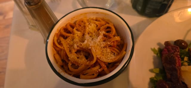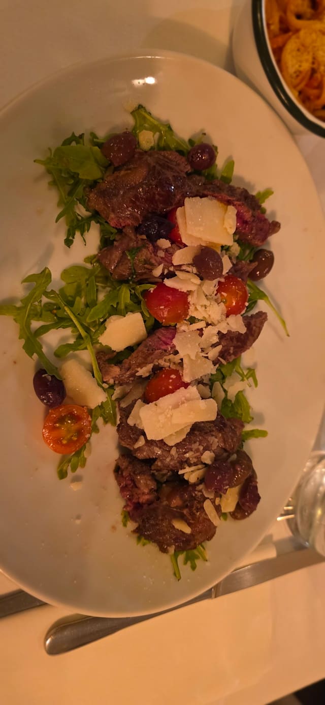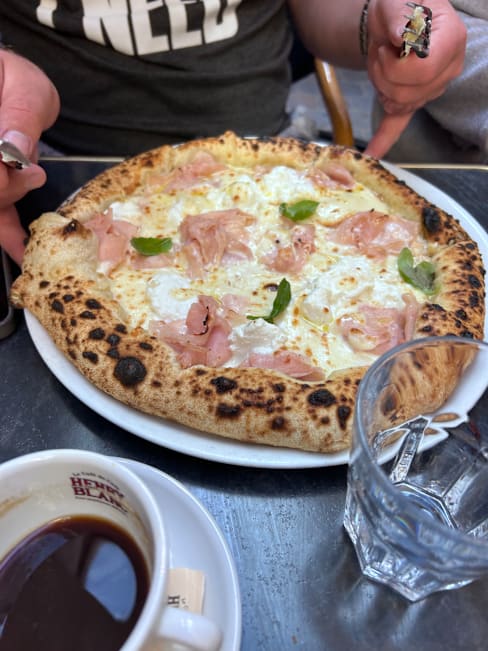 9/10I wasn't very hungry. Had a delicious Negroni, then the ravioli with jumbo shrimp in a savory butter sauce. One of the most delicious things I've ever eaten in my life. Very generous portion. Highly recommended. Try to sit outside if you can gets a little hot in the room with the pizza oven. By the way, the pizza looks incredible.