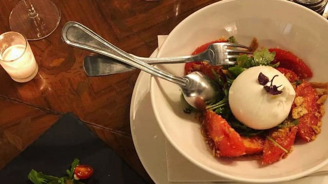 10/10Food was extraordinary, from the burrata al tartufo to the pain perdu pistacchio, as well as spaghetti a vongole, all tastefully matched with a white Greco di Tufo of feudi san Gregorio. We couldn't ask more. It has a nice atmosphere and street feel restaurant as places in Naples. The staff made the experience great giving the right suggestions and explaining the background of each dish, pure passion. Thank you!