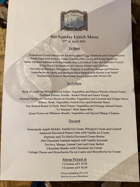 10/10le marquis is a step back in time for all the right reasons. The food is flavoursome and complimentary to everything on the plate . The staff are friendly and helpful. The sunday lunch is excellent value for money.