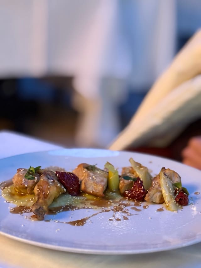 6.5/10I had the seabass and my wife had the gnocchi. The food was very adequate. The did a good job at utilizing the natural flavors of the food, although both meals very very bland. When we ordered a 2018 Barbera, they gave us a 2020 and said it was good just not aged. It was very acidic and did not taste like a high quality 2018 Barbera. Also their offered appetizer was a piece of carrot, celery and another piece of vegeti thrown into a small bowl. They tried to turn an adequate mean into a fancy one. From this experience we will not be returning and would give it another chance if they offered a partial refund, and a shot at another entre but overall it was not a good quality and will not be returning and will turn our friends away from trying.