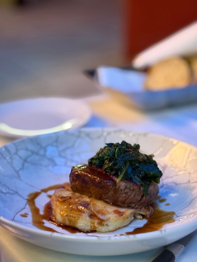 10/10The steak was delicious, cooked perfectly STAR OF THE SHOW. The added touch of offerings of bread service, amuse bouche and palette cleanser were not expected but a very welcome treat. The servers were amazing. The restaurant space was great with candles and quiet enough to have a conversation but not to quiet as to be uncomfortable. A lovely relaxed atmosphere. We went to the rooftop bar mentioned to us by our server this was fabulous and the drinks and service there too was exceptional. Highly recommend if you are wanting exceptional food and service.