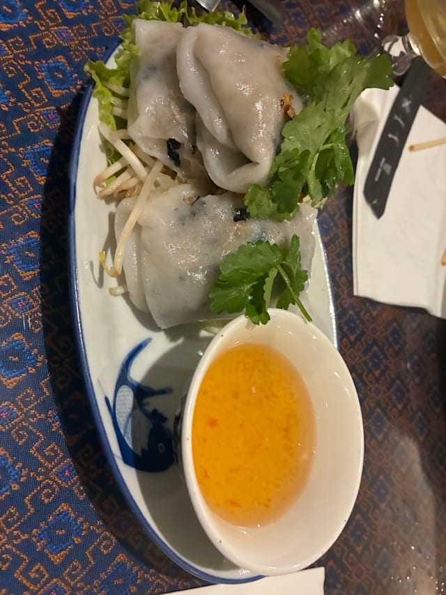 À la farine de riz, porc haché, oignons, champignon noir, soja et salade. (3pcs)