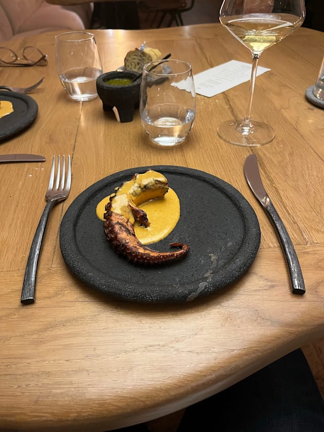 9/10The food was an interesting fusion of French and Mexican and use of mild chillies in the sweet courses was interesting and delightful. The restaurant is intimate and the serving staff did the best they could but I'd suggest was one short to provide an excellent service. We tried the wine pairing which was interesting but needed more of an explanation as to why the wines were chosen to match the food.