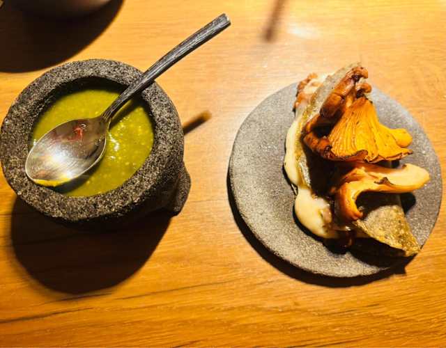 9/10The food was an interesting fusion of French and Mexican and use of mild chillies in the sweet courses was interesting and delightful. The restaurant is intimate and the serving staff did the best they could but I'd suggest was one short to provide an excellent service. We tried the wine pairing which was interesting but needed more of an explanation as to why the wines were chosen to match the food.