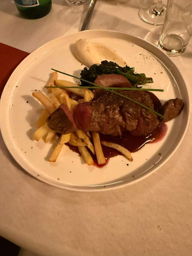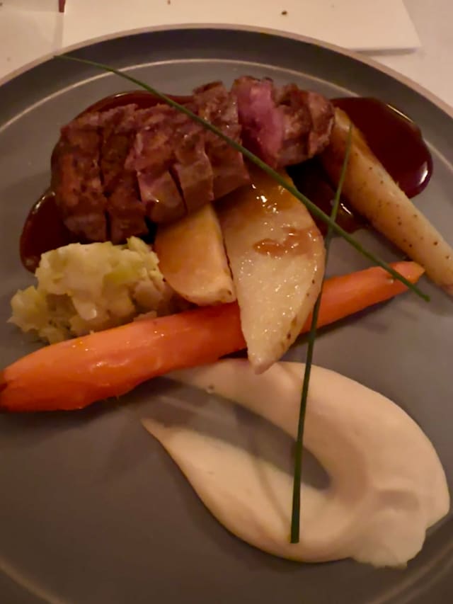 10/10Excellent as always. Rabbit rilette was nice and salty and seasoned. Deer steak was perfect with wine sauce. Chocolate dessert was very filling for its size. Good fruit sauces to its side.