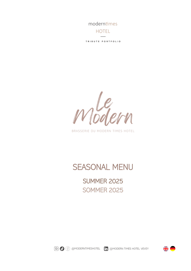 GRILLADE – Amoureux des grillades ? Bienvenue au Times Grill ! Vous succomberez au plaisir de goûter de remarquables pièces de viandes maturées et préparées en show grill. INTEMPOREL – Le restaurant Times Grill est situé dans le Modern Times Hôtel dédié au personnage de Charlie Chaplin vous trans...