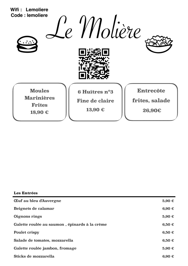 8/10Menus in English would have been helpful, though we looked at an English translation online ahead of time. The Croque Madam was excellent, as was the Crepe Normande. The beef tartare could would have been helped by a side of sliced onions, some rye bread, and salt on the side.