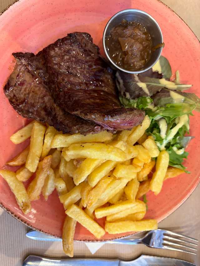 - Boisson chaude au choix, verre de jus d'orange 20 cl, croissant, pain, beurre, confiture, nutella