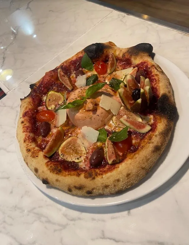 - Boule de Burrata ,Jambon, Becon, Chorizo, Lardons, Tomate cerise dans une pâte à pizza