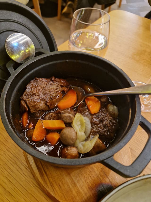 8.5/10Nice setting with friendly service. The food was tasty, however, the portions were small (coquilles st.jaques). What I didn't appreciate was being charged 5 euros for a glass of tap water for my daughter!! And having to serve myself our bottle of wine since the staff was always busy or unatentive (and they left the wine out of reach, I had to get it myself).. I recommend for a normal lunch out.