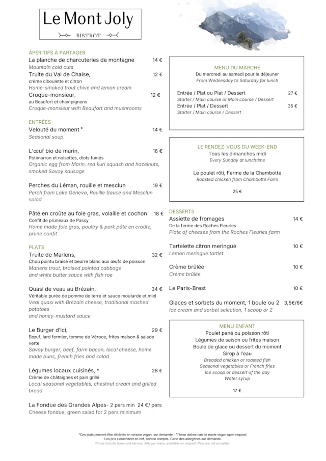 Dear Sir Van Het Hof, Thank you very much for your kind review. We are very pleased to read that you enjoyed your experience at Mont Joly, both the ambiance, the food and the view. We hope to have the pleasure to welcome you again. Kind regards, The Armancette Team