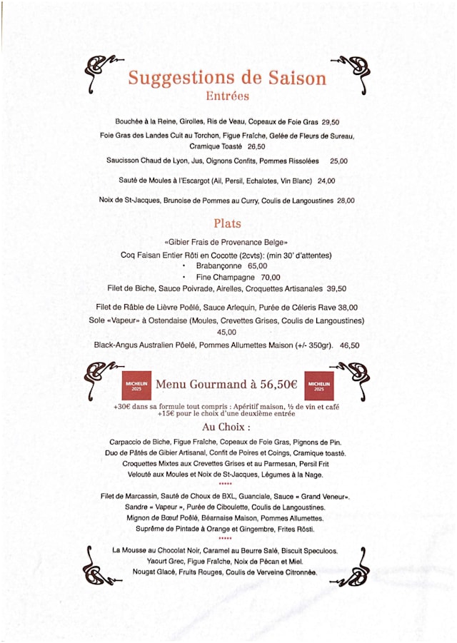 3.5/10It was an unpleasant experience. The main area of the garden was taken by a 20 person table smoking and taking load. Food was desapoirnent.. My wife took shrimps in butter and garlic...that actually was a butter soup with a lot of garlic and 5 mini shrimps. Same for my snsils that were swimming in a sea of butter. My wife had a fillet steak ...was ok. I had zeeland mussles....actually only few on the top.....the rest were ordinary ones. The price was high for the qualify of the food. The service was corect, but you would expect the servsnts to have a better dressing code for a restsurant on the mischlen list. Not to be repeated.