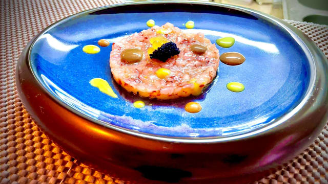 Bottoni di zucca, battuto di scampi e gorgonzola