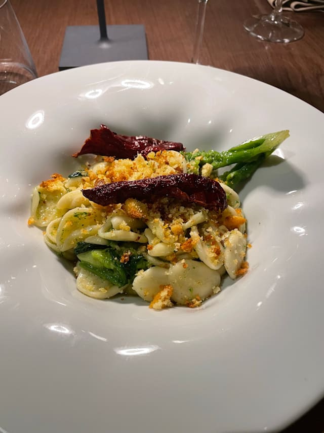 10/10Local seafood in an airy and modern setting. Service was impeccable; it was one of those places where the clearly long-serving waiter made appropriate suggestions, and was in an instant everywhere at once. At one point, I dropped my napkin, and before I could pick it up, he’d grabbed it and replaced it with a new one. He helped us choose our dishes, and our wine, and suggested a nice lemon sorbet as a palate changer after the local catch. We had to look up the band of it; I doubt you’d see it on a California menu, so it was really special to have it here. Restaurant easy to get to, right outside the old city, as is where we’re staying, so it was a perfect choice for a late first night in Bari. They also kindly processed the generous “The Fork” discount; with so many food choices, the app is great for helping us pick out a restaurant, make a reservation, guide us there, and then a discount on top!