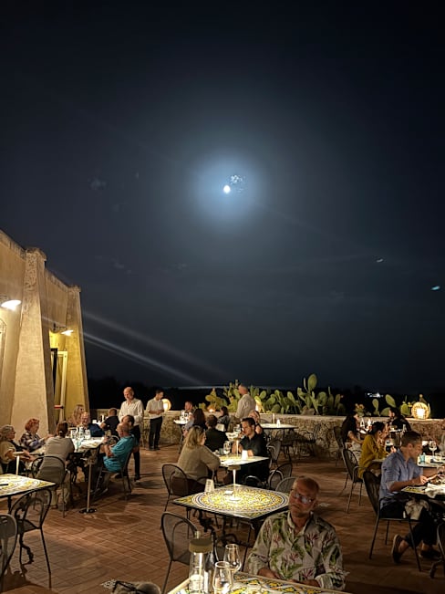 10/10Excellent ambiance in an excellent location. In the middle of the Sicilian campaign, immersed in silence and quiet, this restaurant is the best for romantic as well and family dinner. I went with my partner and we enjoyed the appetizers and the pasta di grano. We were suggested an excellent white wine and then offered fresh Indian fig grown locally. Absolutely amazing.