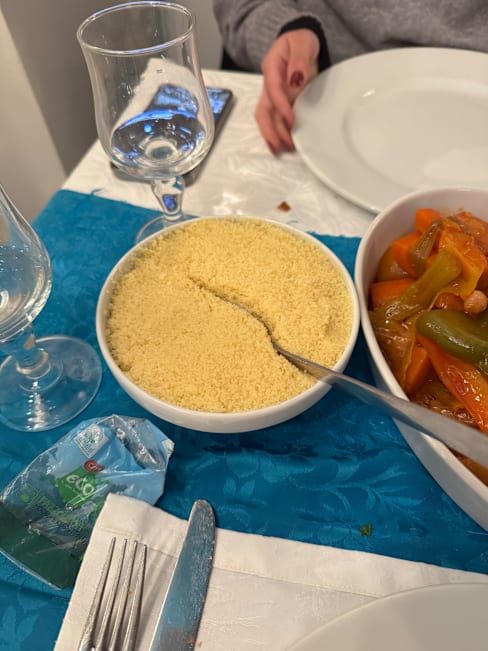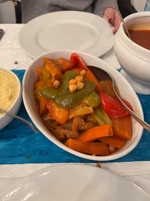 8/10Very good Mechoui couscous with a delicious piece of lamb in tomato sauce. The vegetable broth is amazingly tasty and the whole couscous meal is very well served. Nice relaxed atmosphere too. Don’t miss the tea with pine seeds and orange flower flavoring!