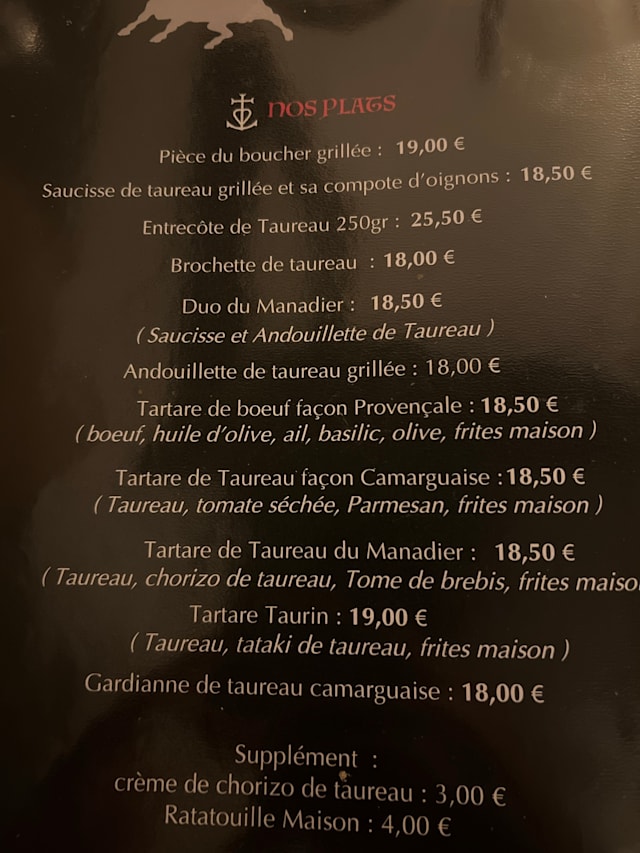 10/10Great and pleasant surprise in Montpellier. Most dishes made of bull meat. Everything we ate was just perfect! Wine and service also great!