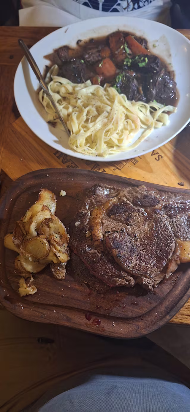 I had “Cat’s tongue” steak reccomended by the lovely waiter who served us and it was amazing !!! Also desert was great ! The place is really nice and a family business. They have fake meat which next time I wannna try !