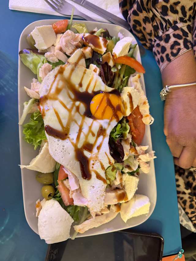 - Poulet, mozzarella, tomates fraîches, oeuf, olives