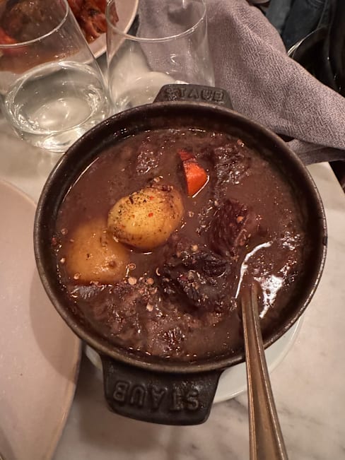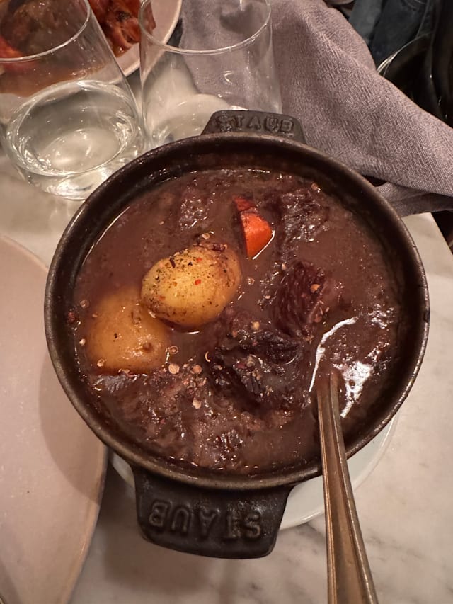 3.5/10The duck was hard, almost had to saw through it. the cod fish was bland and had no moisture. The Beef bourguignon was so dry and the sauce only at best was mediocre. Although, the starter Prawn Risotto is quite good. We didn’t even order the dessert for fear that it would be another disappointment. All in all, the worst dining experience in Paris so far. I never even write reviews but this is really bad, truly do not know how they got such high reviews, perhaps we came at the wrong time. But I am sure we will not visit this restaurant again :/