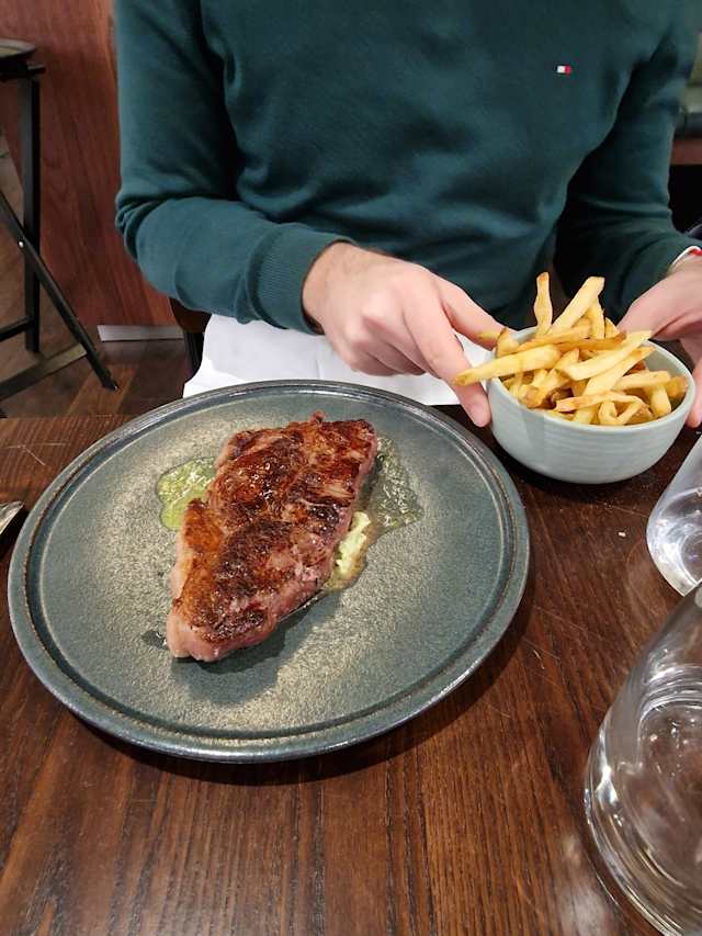 6.5/10The entrecotte was not as expected, tough and grainy. Liked the Serrano ham and Parmesan appetizer, service was fast but I had to ask for mustard three times. Floating island dessert was unremarkable.