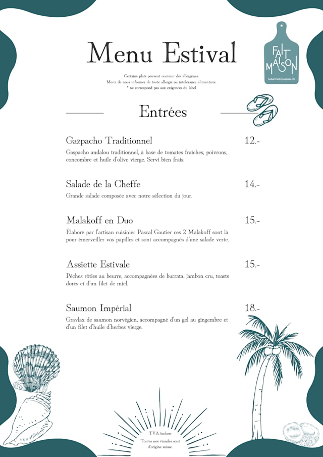 Accompagné de belles frites et d’une salade verte. 1 accompagnement au choix par plat : frites fraîches / rösti ou spätzli