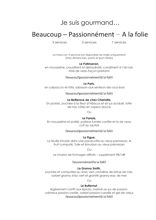Menu (7 services)€118 per guest