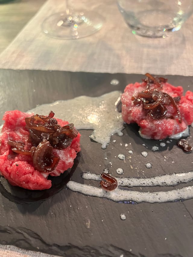 10/10Extraordinary food, ambience and service by the chef himself. I had the beef tartare with creamy Roquefort, pistachio powder and red onions with balsamic vinegar. Superlative. I followed with beef diaphragm with its gravy and an outstanding purée of carrots, sage, rosemary, ginger and chives. The flavors of this special dish are strong and encounter my personal taste. I accompanied my meal with a glass of Ovada reduction wine from Piedmont, perfect for the decise flavors of my meal. We were served by the chef himself, a very competent and kind young man. Strongly advised.