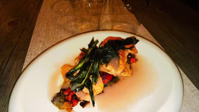 - Il menù degustazione con un calice di orange organic wine della tenuta fornace in abbinamento ad ogni portata